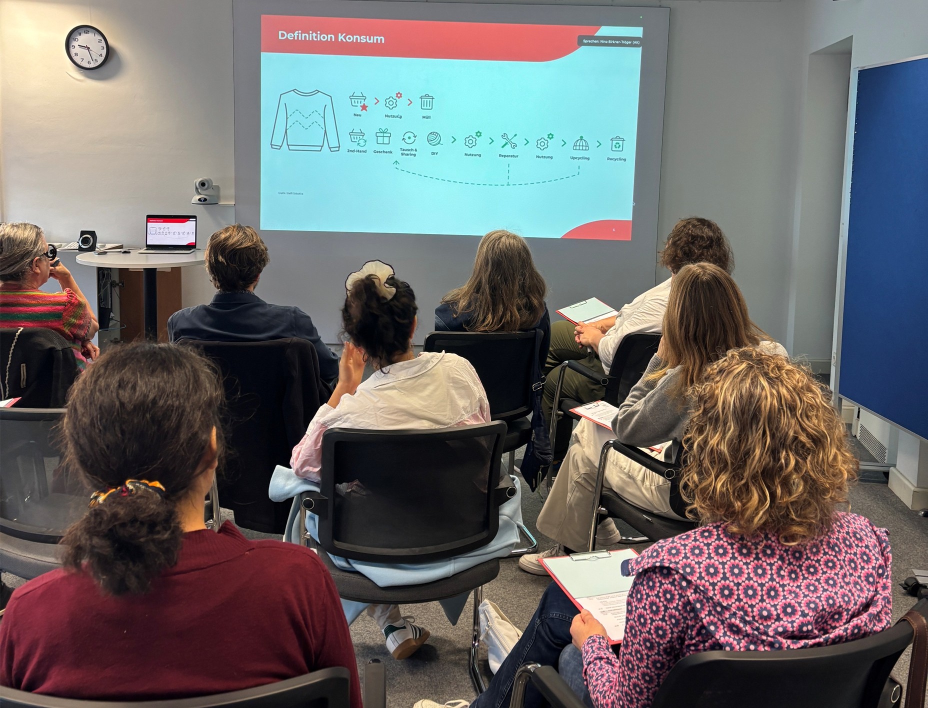 Im Rahmen des von der Deutschen Stiftung Verbraucherschutz geförderten Projekts fand am 7. November 2025 der Grundlagenworkshop „Entscheidungshilfe Mode für junge Menschen“ statt. Gemeinsam mit rund 20 Expert:innen aus Mode, Bildung, Verbraucherschutz und Kommunikation wurde diskutiert, wie junge Menschen ihre Modeentscheidungen treffen – und wie sie dabei unterstützt werden können, bewusster und nachhaltiger zu konsumieren.