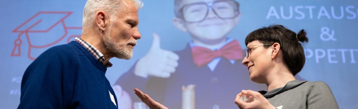 In der als Fishbowl konzipierten offenen Diskussionsrunde „Voneinander Lernen: Blickwinkel auf finanzielle Verbraucherbildung“ tauschten Vertreter:innen von der Bundesanstalt für Finanzdienstleistungsaufsicht (Bafin), aus dem Verbraucherschutzministerium Schleswig-Holstein, dem vzbv, Visa Europe und dem Sparkassen- und Giroverband sich fachlich und perspektivreich über bestehende Angebote finanzieller Verbraucherbildung aus. Mit Beträgen aus dem Auditorium wurden zahlreiche Baustellen sowohl auf schulischer als auch außerschulischer Ebene identifiziert. Einigkeit herrschte darüber, dass finanzielle Verbraucherbildung alle Verbraucher:innen betrifft. Herausforderung sei, die jeweilige Zielgruppe mit Informationen und Aktivitäten in ihrer Lebenswelt abzuholen.