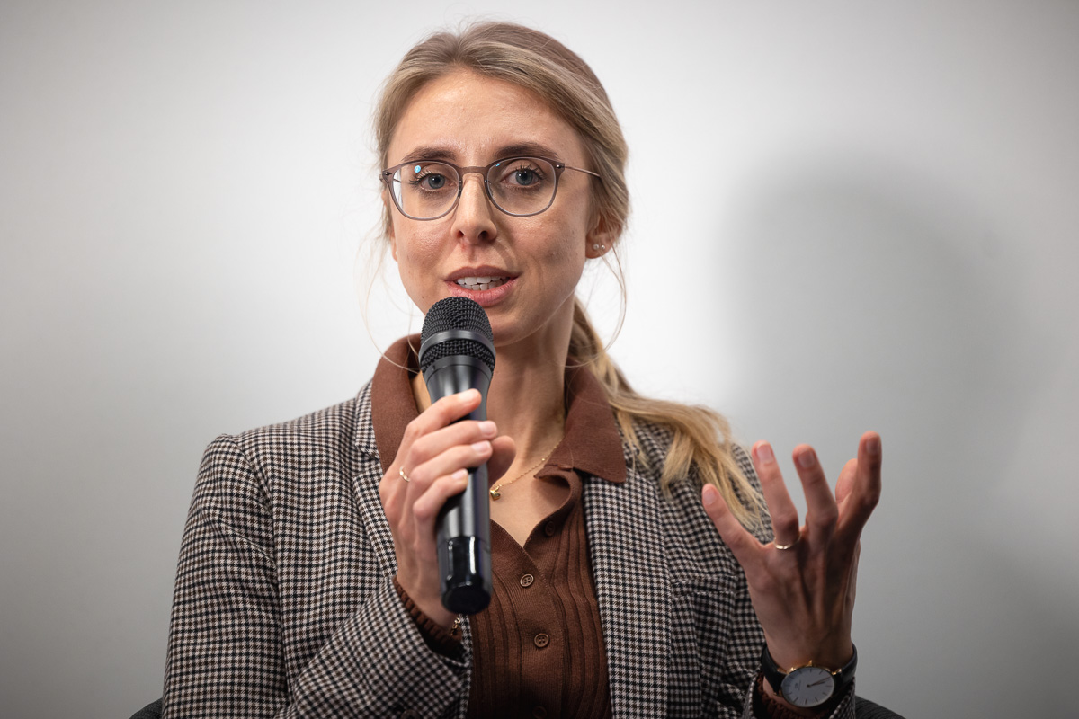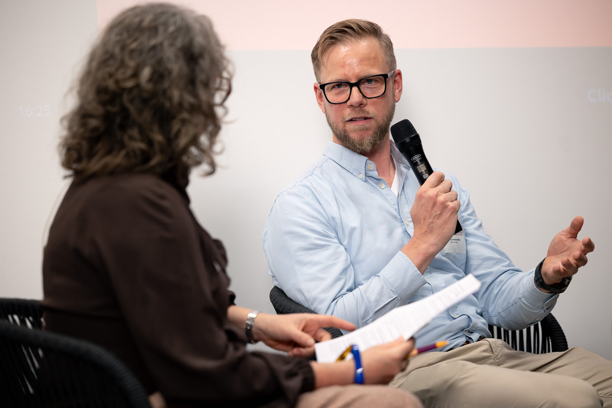 Im Podiumsgespräch diskutierten Carina Bischof (Fasion Revolution Germany e.V.), Carla Kollenberg (Hess Natur-Textilien GmbH & Co. KG) sowie Friederike Elsner (Portal Siegelklarheit.de), wie Verantwortlichkeiten für Verbraucher:innen reduziert und Zugänglichkeit einfacher werden könnten. Wo strukturelle Mechanismen greifen und wo sie fehlen, um den Preisdruck von den Verbraucher:innen zu nehmen, diskutierte in einer zweiten Themenrunde Pablo von Waldenfels (Tchibo GmbH) mit Sebastian Steineke (CDU/CSU-Bundestagsfraktion) und Dr. Martin Kuhne (Verbraucherzentrale NRW).